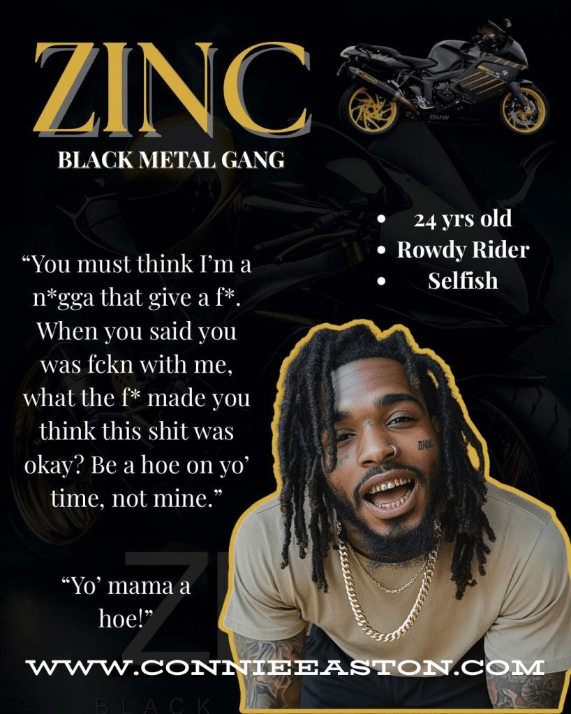 One thought on “Zinc: Black Metal Gang by Mrs. Connie Easton”