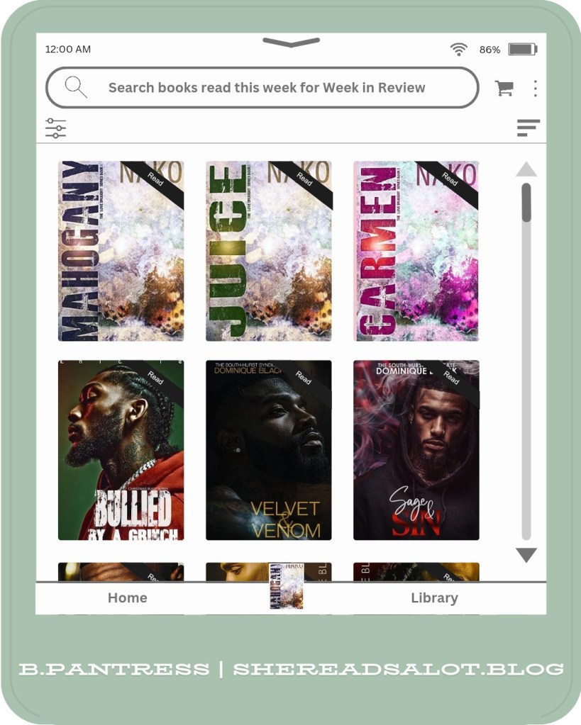 I went for a faster paced read with Mrs. K. Nicole‘s Bullied by a Grinch, book 3 in her Christmas Bully series. This time we get to know Shad Davis brother to Kasim Davis.